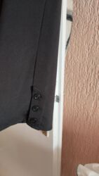 Ravne nogaviceCrne elegantne pantalone sa ravnim nogavicama. Klasičan kroj sa faltnama napred, srednje visok struk, kopčanje na rajsferšlus i dugme. Donji rub nogavica ukrašen je detaljem sa tri dugmeta sa spoljne strane. Materijal je gladak i postojan, pogodan za poslovne i svečane kombinacije. Dužina do članka (culotte/kraća ravna nogavica). Neutralna crna boja lako se uklapa uz košulje, sako ili rolku.