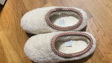UGG ženske kućne papuče/klompe od ovčje vune - Model: UGG Tasman stila – slip-on klompe sa povišenim EVA/gumenim đonom - Materijal: spolja 100% ovčja vuna (shearling), unutrašnjost mekana flis/mer...