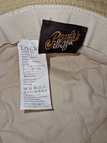 - Detalji: kožna pravougaona aplikacija napred sa utisnutim LOEWE logotipom; duže platnene trake sa odštampanim LOEWE natpisom i kožnim završecima