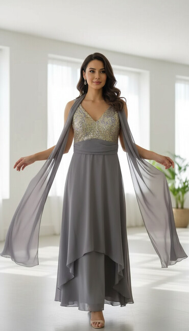PS Fashion S (EU 36), bоја - Siva, Večernji, maturski, Kratkih rukava