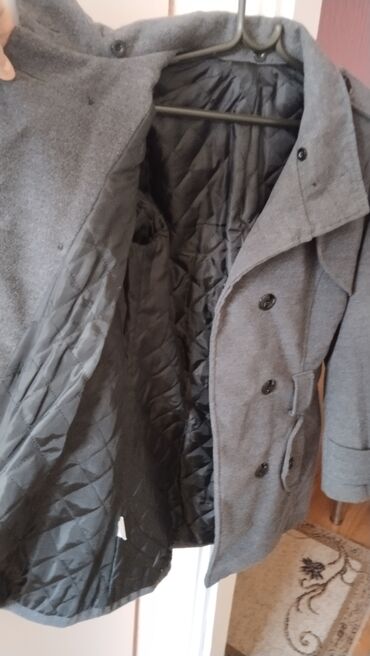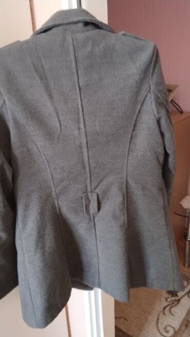Sivi ženski kaput/blejzer u stilu trench pea-coat modela. - Dužina do kukova - Dvoredno kopčanje (6+ dugmadi napred) - Širok rever sa mogućnošću dodatnog kopčanja pri vratu - Rukavi sa preklopom i ...