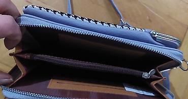 - Unutrašnjost: više odeljaka organizovanih kao novčanik; centralni džep na rajsferšlus, pregrade za novac i kartice, dodatni džepići.