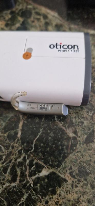 - Brend/model: Oticon, serija GO (oznake na kućištu: GO, Oticon Denmark)