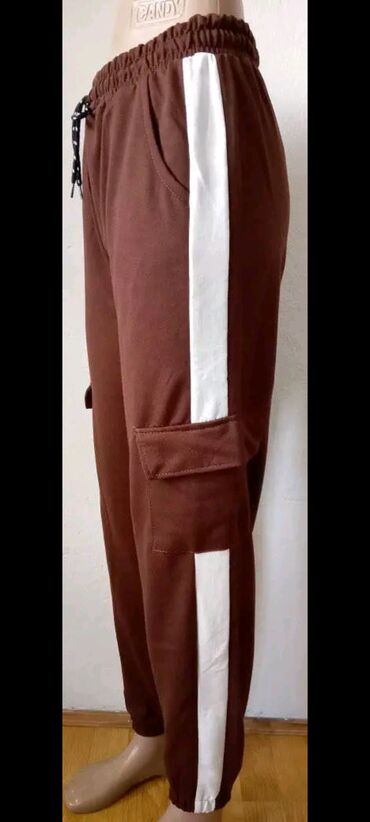 O trošku kupcaSportske pantalone – braon boja sa belom bočnom prugom.
