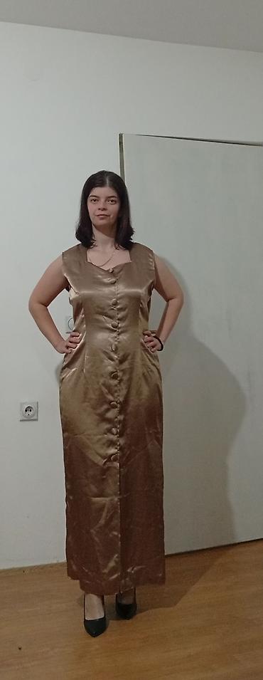 Ženska duga haljina/komplet bez rukava u zlatno-bež nijansi.