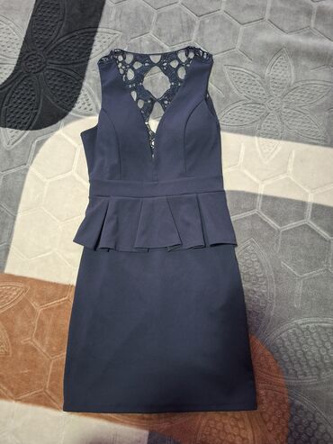 Elegantna tamnoplava koktel haljina bez rukava