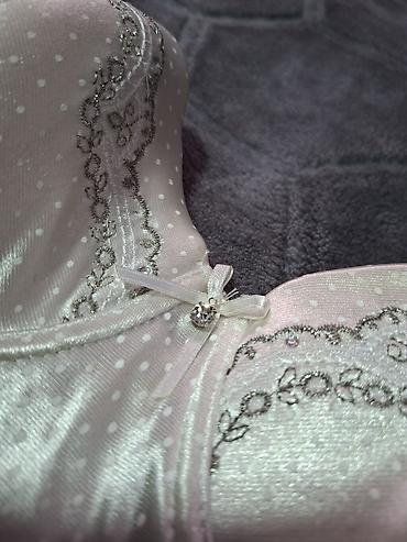 Materijal: glatki saten sa elastičnim dodatkom i čipkanim detaljima. Boja: svetla, biserno-šampanj.