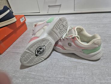 - Boje: krem osnova sa ružičastim i mint detaljima, šarene pertle