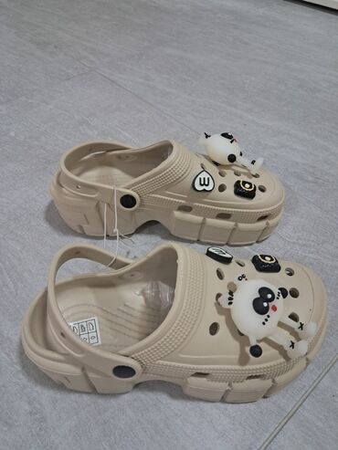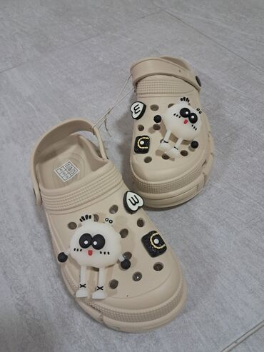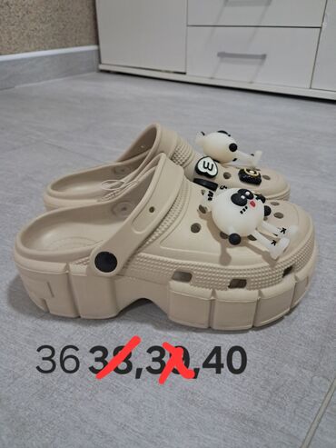 Bež klompe/sabo papuče sa platformom i dekorativnim Jibbitz privescima.