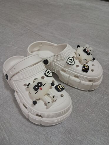 Bele platforme klompe/sandale sa ukrasnim Jibbitz detaljima