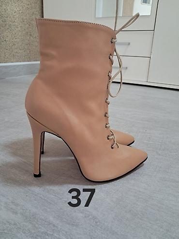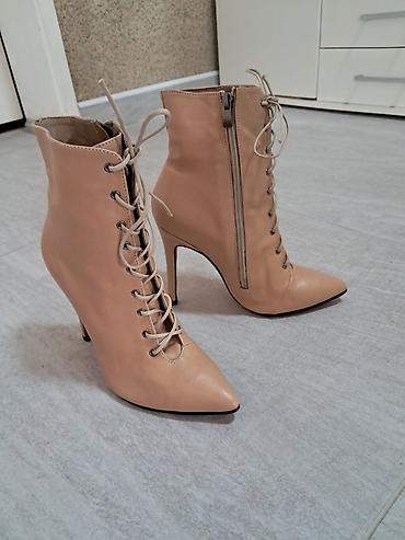 Ženske kožne čizmice na štiklu, nude/bež boje, broj 37.