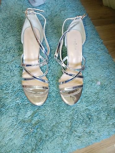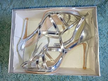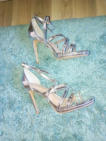 Srebrne ženske sandale sa visokom potpeticom