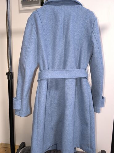 Svetloplavi kaput marke Orsay sa kaišem. Kaput nema kopčanje i ima rever kragnu. Poseduje dva prednja džepa. Vrlo malo nošen, u odličnom stanju.