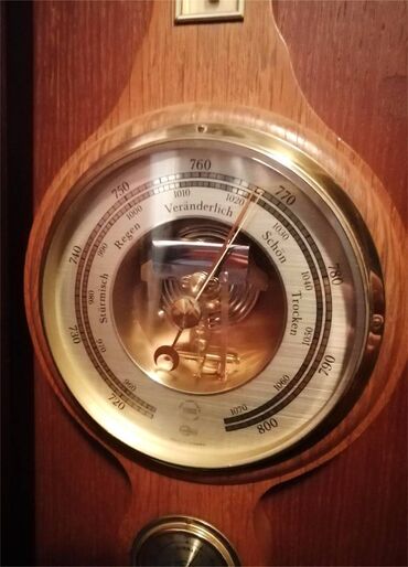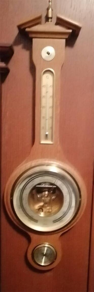 O trošku kupcaProdajem ukrasni, zidni, precizan barometar, termometar i higrometar nemačkog brenda "Barigo". Skala barometra u milibarima i mmHg, sa mogućnošću praćenja tendencije barometra - raste ili opada. Ukrasno, lepo, drveno kućište visine 55 cm. Barometar je prečnika 18 cm plus drveno kućište. Ispravna i precizna sva tri instrumenta. Termometar sa živom, a barometar izrađen sa "Barigo" tehnologijom tzv. duplih vakuum doza, otvorenog tipa. Kontakt: 037 - 712-187 (od 12-23h);