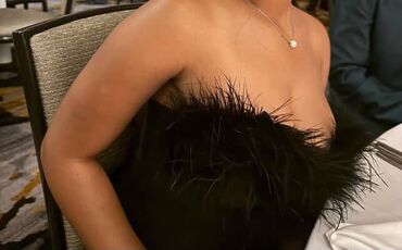 Elegantna večernja haljina sa metalnim prstenovima na vratu i dubokim drape dekolteom. Model je dugačak, prati liniju tela i blago se širi ka dnu. U predelu struka i kukova nalazi se izraženo nabor...