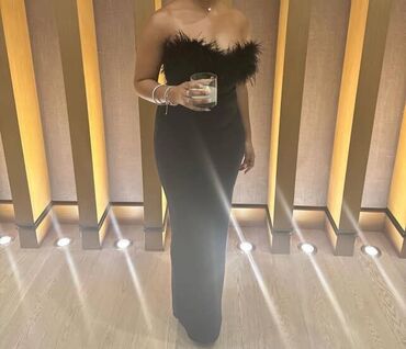 Svečana duga haljina bez rukava sa efektnim „waterfall“/kaskadnim dekolteom. Kroj prati liniju tela i blago se širi ka dnu, stvarajući elegantnu siluetu pogodnu za večernje prilike, proslave i kokt...