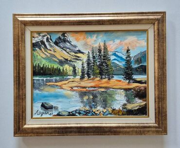 Ulje na platnu U duhu planine, prelepo umetnicko delo. Slika je uramljena u jako lep ram, dimenzije slike sa ramom 52 x 42. Privatna kolekcija.