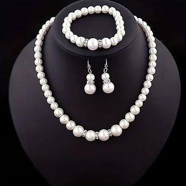 Elegantni biserni set nakita – ogrlica, narukvica i minđuše -