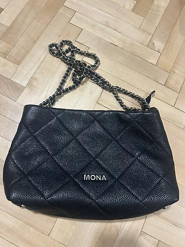 - Metalni detalji: srebrni ton (logo MONA napred, karike lanca, rajsferšlus)