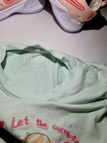 Prodajem dva komada dečije garderobe, oba original: 👕 Guess majica veličina 18m (odgovara otprilike 80–86 cm) nikad nošena, samo oprana posle kupovine nežna mint boja sa preslatkim printom potpuno ...
