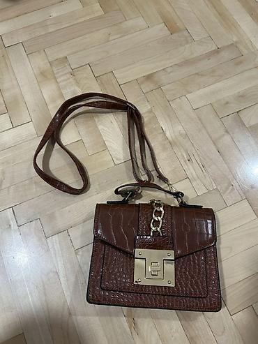 Elegantna braon torbica sa krokodil teksturom