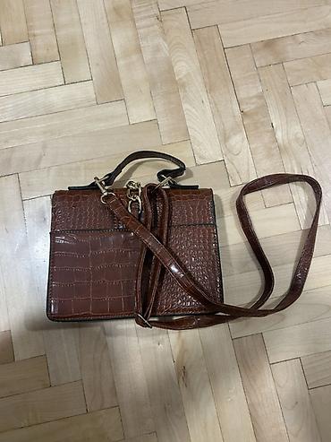 Elegantna braon torbica sa krokodil teksturom - Materijal: veštačka