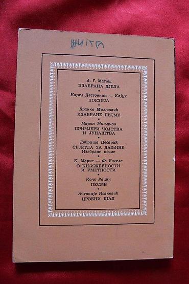 Tu je telefon ako postoji interesovanje za više predmeta, kao i više informacija za određeni oglas. Ukoliko ste zainteresovani za antikvitete, slike, stari kovani novac, markice, razglednice, stripove, figure i unikate slobodno pogledajte moj izlog. Redovno dopunjavam listu. Изабране Песме, Антон АшкерцИздавач: Рад БеоградГодина: 1979. Број Страна: 100, мек повез, ћирилицаОчуваност 4. Стање се најбоље може видети на фотографијама. Комплетан, компактан и коректан примерак. Део личне колекције. Предмете шаљем пост еxпресом или тисковином ако има потребе. За додатне информације и фотографије слободно питајте.