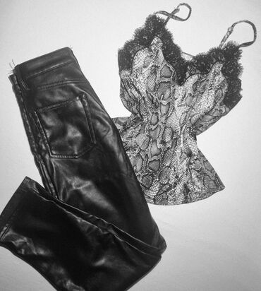 Veštačka kožaModni duo premium izgleda — H&M pantalone + top (S/36)