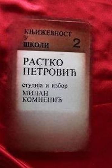 RASTKO PETROVIĆ, STUDIJA I IZBOR MILAN KOMNENIĆ | Rastko Petrović, Studija I Izbor Milan KomnenićKnjiževnost u školi 2Očuvanost 5. Stanje se najbolje može videti na fotografijama. Kompletan, kompaktan i korektan primerak. Deo lične kolekcije. Predmete šaljem post ekspresom ili tiskovinom ako ima potrebe. Za dodatne informacije i fotografije slobodno pitajte.