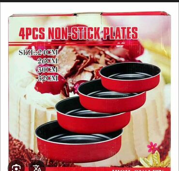 Pakovanje: 4PCS NON-STICK PLATES, Springform/springvorm označeno na kutiji. Made in China.