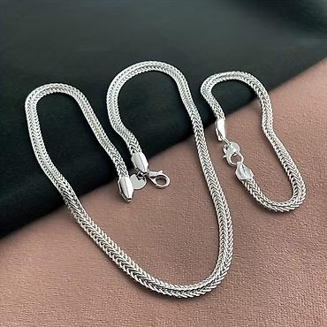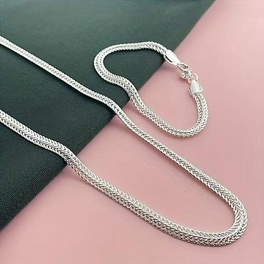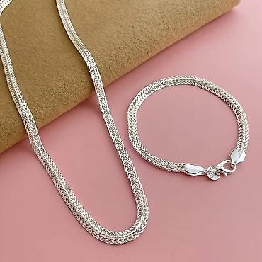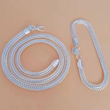 Srebrni set lančić + narukvica, pleteni „foxtail” (lisji rep) dizajn
