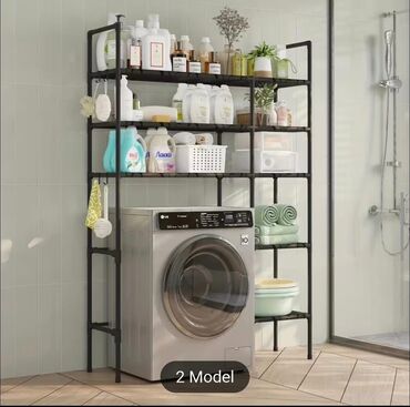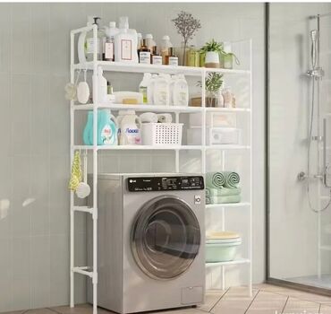 - Konstrukcija: metalni ram sa više polica koje se postavljaju iznad veš-mašine, maksimalno iskorišćava vertikalan prostor.