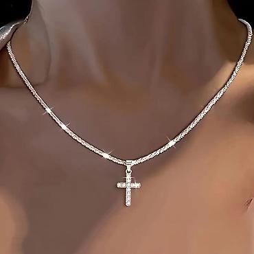 - Privjesak u obliku krsta, ukrašen sitnim svetlucavim kamenčićima za diskretan, sofisticiran efekat.
