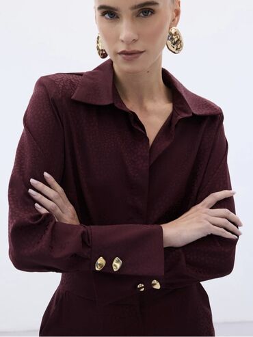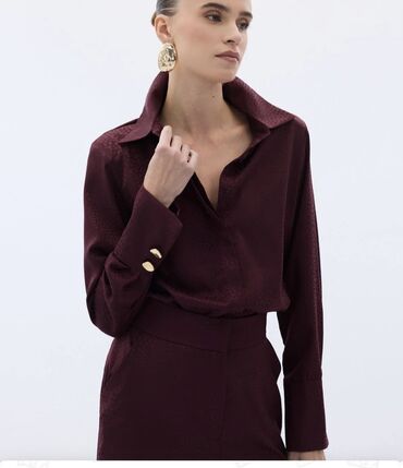 - Gornji deo: klasičan kragnati model sa skrivenim kopčanjem na dugmad; dugi rukavi sa širokim manžetnama