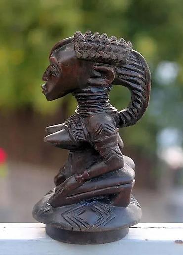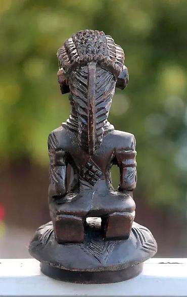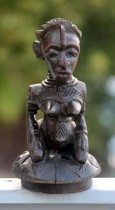 Afrička umetnost Senufo Statue, Materniti Obala Slonovače. Ovo je delo bez sumnje delo majstora kipara! Vrlo dobar rad! Vrlo lepa tamna patina. Kupljeno kao antikvitet 1991. Visina 24 cm. U stanju kao na fotografijama Radovi Maternite Senoufo na najpoznatijem globalnom aukcijskom sajtu dostižu cene od preko 1000 eura. Statua predstavlja ženu koja kleči. Ima sve karakteristike umetnosti Senufo skulpture: fototip koji daje utisak toka prednjih anatomskih elemenata napred i dole: lice je dugačko usmereno napred i dole. Kosa češljana u obliku srednjeg grebena, antero-posteriorno. Istaknute uši. Senufosa (Senufo - Sijena) ima oko tri miliona, žive na širokom geografskom području raspoređenom između juga Malija u regionu Sikaso, jugozapada Burkine Faso, Gane i severa Obale Slonovače. Poznati su po svojim vajarskim radovima: rezbarenim vratima, maskama, velikim ritualnim statuama zvanim „ pombibele“ koje su koristila deca koja prolaze kroz poro inicijaciju. . . Senoufos takođe klešu porodiljske statue i razne ceremonijalne i profane utilitarne ili ukrasne predmete kao što su sedišta, štapovi… Senufosi su uglavnom farmeri koji veruju u boga stvaraoca u ime „ Koulotiolo“ , on je nepristupačan, ali s druge strane, svako selo ima svoju regenerišuću majku „ Katieleo“ . Pogledajte fotografije jer su one deo opisa. Prodaje se statua koja je fotografisana u stanju koje vidite. Hvala na poseti. Zapratite naše oglase jer ćemo se truditi da skoro svakog dana dodadamo novi, a stare posle isteka nećemo obnavljati. Cene su uglavnom promotivne, kasnije će se prodavati na drugom mestu za nešto veći iznos. 92 z 0562 ✨