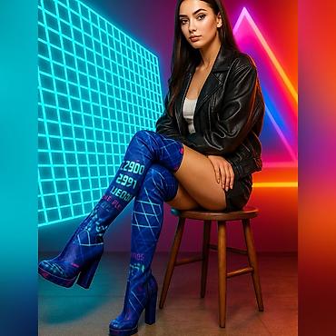 Visoke čizme preko kolena – futuristički neon dizajn
