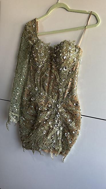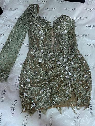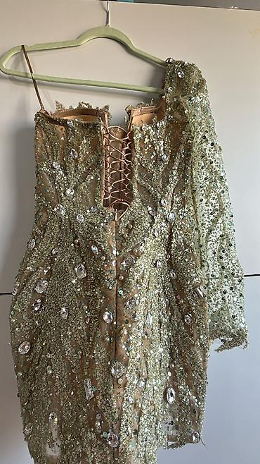 - Boje i efekat: hladno zlatno‑maslinasti sjaj šljokica sa visokim odsjajem kristala; snažan “stage/glam” efekat pod svetlima.