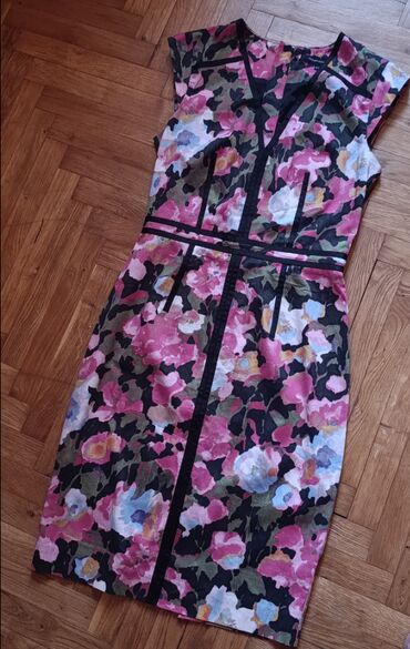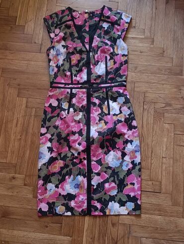 Ženske haljine – više modela i veličina 1) Atmosphere haljina (bele osnove sa crnim floralnim printom, kratki rukavi u crnoj boji, V-izrez, struk elastičan) - Veličina: M (na etiketi: UK 10 / ES 3...2 000 RSD