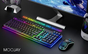 Brend: MOOJAY (naznačeno na fotografijama). Set je idealan za gejmere i korisnike koji žele efektno osvetljenje i udobnost tokom dugog rada.