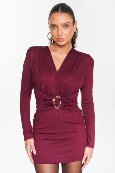 Elegantna bordo haljina sa dugim rukavima i zanimljivim, voluminoznim