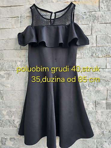 Samo jednom obucena haljina, kao nova, mini, seksi, vecernja. Prodata mi je kao uni velicina i placena 5600, ali ne moze XL na primer. Dublji izrez na ladjima i traka kao masna koja se veze nazad. ...