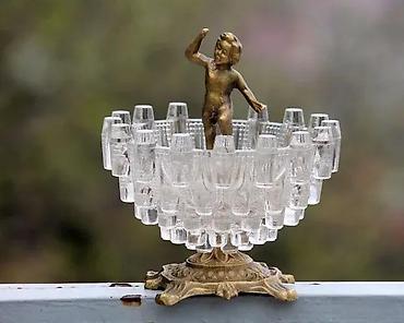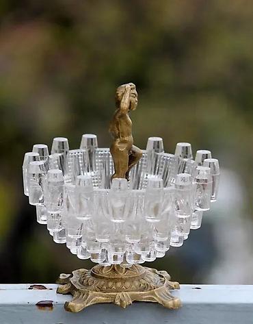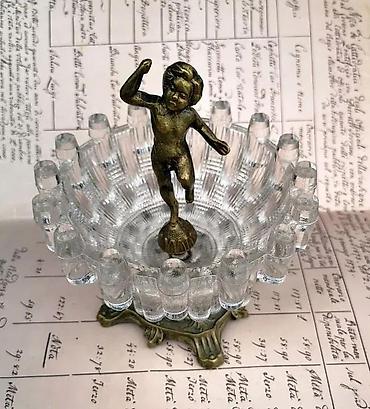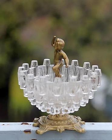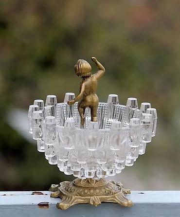 Holivud Regency kristalna posuda sa postoljem i heruvimom. Vintage Boopie Glass iz 1960-ih. Secesijska kristalna posuda s akcentom Hollywood Regency u stilu Art Nouveau. Masivna kristalna posuda sa mesinganim postoljem i heruvimom/ kupidonom u centralnom delu. Kolekcionarski primerak. Savršena za luksuzan, dramatičan i maksimalistički dekor. Eclectic Glamour, Boho Chic. Vrlo teška posuda – 1 kg i 110 grama; visoka 16,5 cm i prečnika 15.5 cm. Pogledajte fotografije, one su vitalni deo opisa, prodaje se upravo predmet koji je fotografisan. Hvala na gledanju ✨