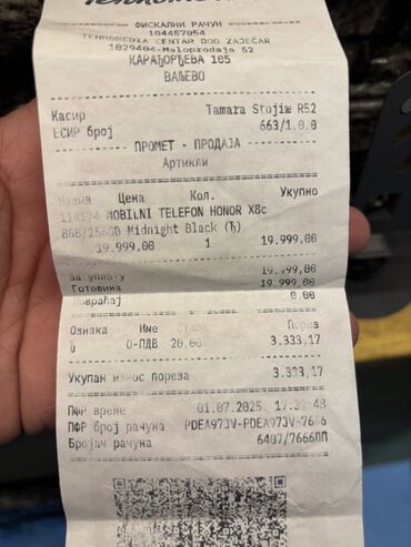 Pogodno za korisnike koji žele tanak telefon sa velikim ekranom, modernim izgledom i više zadnjih kamera, u prepoznatljivom HONOR dizajnu. U pakovanju je prikazana varijanta X8c. Telefon je kupljen u julu i poseduje garanciju.