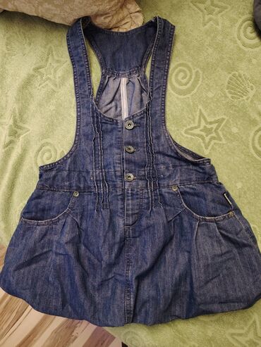 - Farmer haljinica/tunika bez rukava od denima, sa tregerima, tri dekorativna dugmeta napred, sitnim naborima i funkcionalnim džepovima sa strane. Praktična za slojevito oblačenje preko majice.