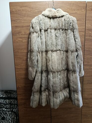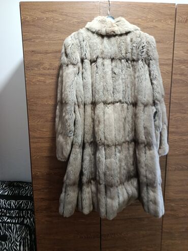Ženska bunda/kaput od pravog krzna, kratkog kroja (dužina do kukova). Topao, gust i mekan krzneni materijal u kombinaciji toplih braon tonova sa svetlim prugama koje daju efekat šara. Klasična kra...