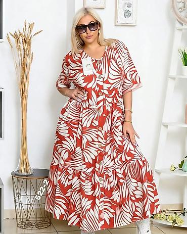 Lepršava midi haljina sa tropskim listovima L XL 2XL 3XL 4XL - Kroj