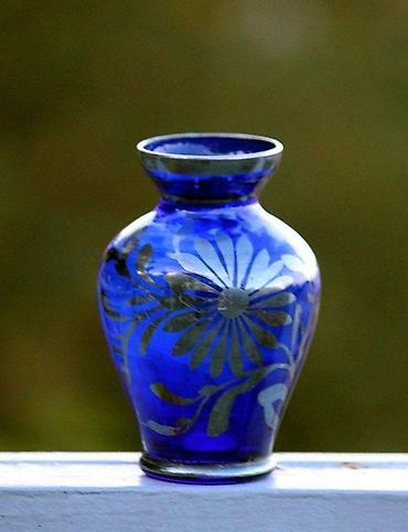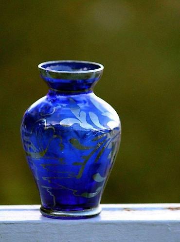 Mala vaza od Murano stakla Blue Pattern Silver Art. Prelepa mala kobaltno plava staklena vaza sa baroknim cvetnim ukrasom u srebru 925. Proizvedeno u Muranu, Italija, verovatno u fabrici FeBland Murano. Pogledajte poslednju fotografiju preuzetu sa interneta na kojoj se vidi očuvana etiketa proiizvodjača. Visina 11 cm. Pogledajte fotografije, one su vitalni deo opisa, prodaje se upravo Murano vaza koja je fotografisana (osim poslednje fotografije koja je preuzeta radi prikaza etikete). KP73 8987 ✨