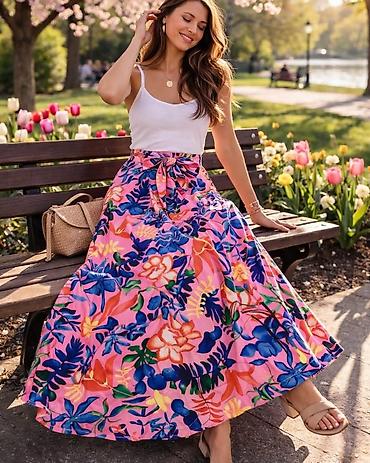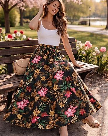 Duga letnja suknja sa cvetnim printom - Kroj: midi/duga širija suknja