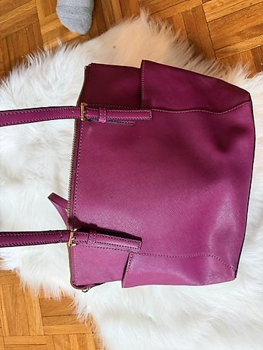 - Materijal: saffiano koža (strukturirana, izdržljiva) u intenzivnoj fuksija/šljiva nijansi
