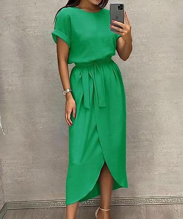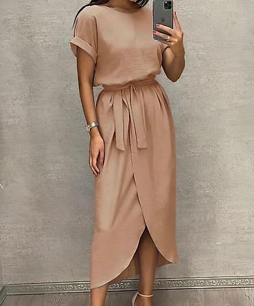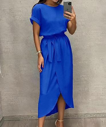 Midi haljina sa pojasom i preklopom Univerzalna veličina - Kroj